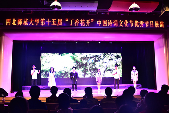 “丁香花开”中国诗词文化节作为我校精品校园文化活动之一,当晚的展演作为本届“丁香花开”中国诗词文化节的收官之作,校学生会从24个学院推荐的节目中,经过多次编排,最终确定了10个优秀节目进行了展演。