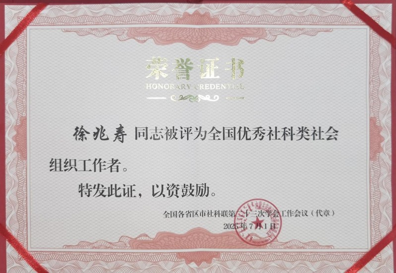 西北师大徐兆寿荣获“全国优秀社科类社会组织工作者”称号